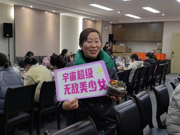 在DIY過程中,大家互相交流、分享心得,笑聲和談話聲此起彼伏。有的女神選擇了簡約風格,將多肉植物種植在小巧精致的花盆里,展現出一種清新脫俗的美;有的則選擇了色彩豐富的搭配,將不同顏色的多肉組合在一起,創造出一幅幅生動的畫面。