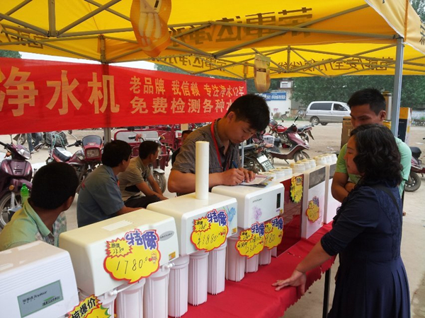 5月26日,榮事達在河南信陽甘岸鎮(zhèn)開展“榮事達凈水機 入小區(qū) 下基層 送健康”活動,推廣健康飲水。榮事達凈水產(chǎn)品深受當?shù)叵M者喜愛,活動當天售出30多臺機器。