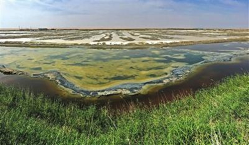 當(dāng)?shù)啬撩裾f(shuō),這些排污池實(shí)際上是蒸發(fā)池,未經(jīng)處理的廢水排入后,經(jīng)過(guò)自然蒸發(fā),然后將沉淀下來(lái)的黏稠的沉淀物,用鏟車鏟出,直接埋在沙漠里面。