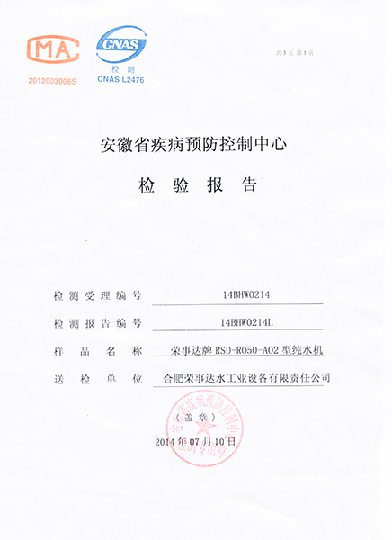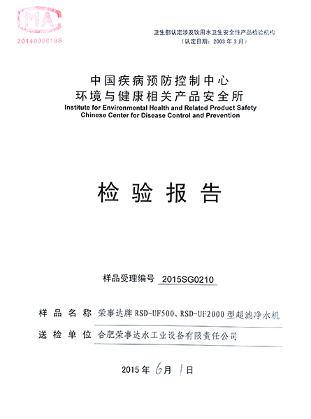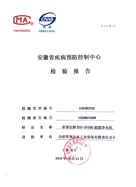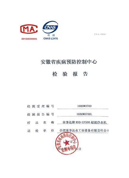 RSD-UF500超濾凈水機(jī)檢驗(yàn)報(bào)告... -