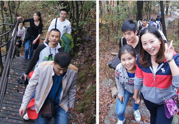 榮事達(dá)全體隊(duì)員不為艱難,奮勇而上,沒有一個(gè)人退縮亦無任何人掉隊(duì)。隊(duì)員們相互鼓勵(lì),相互照應(yīng),遇到極其陡峭或較滑的路段,前面隊(duì)員總會(huì)大聲招呼后面隊(duì)友小心注意;在極難攀爬的上坡處,總有隊(duì)友伸出援手拉一把。經(jīng)過兩個(gè)多小時(shí)的艱難跋涉,所有隊(duì)員都成功登頂。