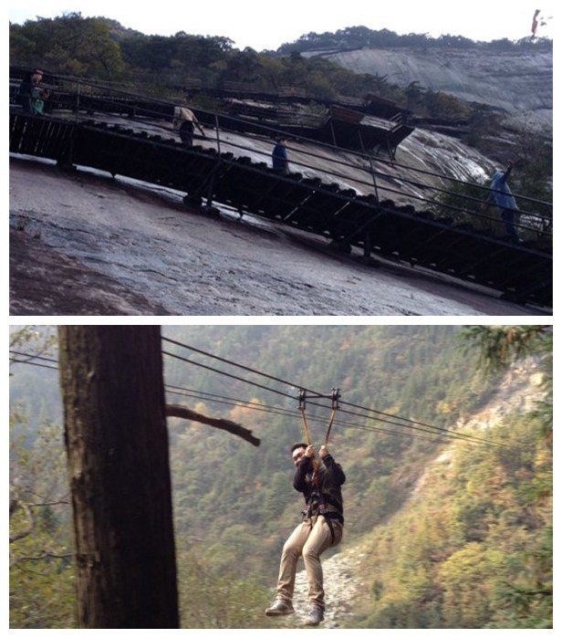 次日,在事業(yè)部總經(jīng)理王悅生的帶領(lǐng)下,市場部、招商部人員挑戰(zhàn)自我、峽谷飛渡,體驗(yàn)了全長600米的溜索;勇攀矗立在懸崖峭壁上的白馬峰棧道,登峰頂、鳴古鐘,奏響勝利的號角。