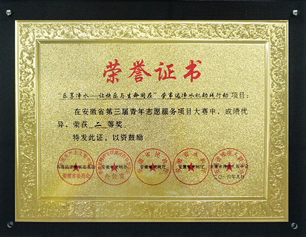 2016年,榮事達水工業(yè)公司走進紅色革命老區(qū)——金寨縣,攜手金寨希望公益服務(wù)中心及地方公益協(xié)會共同發(fā)起“‘給山區(qū)孩子一杯水’——援建金寨縣中小學(xué)凈水設(shè)備公益項目”,為金寨縣所有中小學(xué)援建直飲水系統(tǒng)400多套,全面呵護學(xué)生飲水健康。該項目被全國文明辦評為“全國百佳公益項目”。