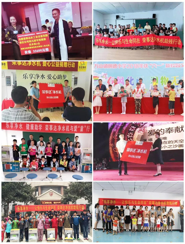 早在2011年,榮事達就面向全國開展“樂享凈水?健康助學行動”,截至目前已向安徽、江蘇、陜西、江西、河南、河北等多個地區(qū)的學校捐贈凈水設備數(shù)千套。2016年,榮事達走進紅色革命老區(qū)金寨縣,向全國首個希望小學——金寨希望小學捐贈了直飲水設備,兩千多名師生因此喝上了健康直飲水。之后,榮事達聯(lián)合金寨希望公益服務中心及地方公益協(xié)會共同發(fā)起“給山區(qū)孩子一杯水”——援建金寨中小學凈水設備公益活動,榮事達援建400多套直飲水設備,幫助全縣的學校解決了飲水難題。該公益項目引發(fā)了社會各界熱烈關注,被評為“安徽省十佳學雷鋒志愿服務項目優(yōu)秀典型”。立責于心,健康助學,在公益這條路上,榮事達未來將繼續(xù)推進,為更多校園送去安全水,盡心呵護孩子們健康成長。
