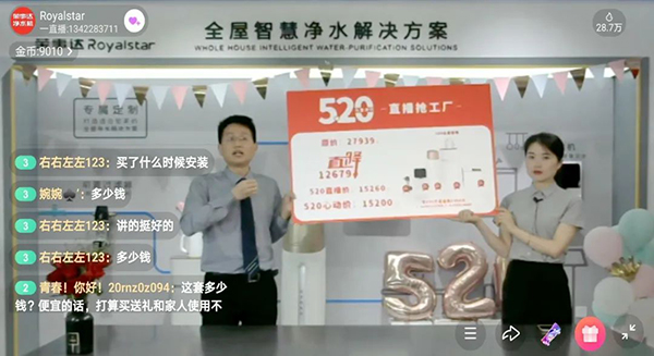 直播中,榮事達(dá)主播團(tuán)隊向觀眾們分享了榮事達(dá)RO冷熱一體機(jī)以及全屋凈水系列產(chǎn)品,并對產(chǎn)品性能品質(zhì)進(jìn)行了深度講解。此次直播活動的重磅套餐——榮事達(dá)全屋智慧凈水系統(tǒng),基于個性化家庭定制場景,涵括了前置過濾器、中央軟水機(jī)、反滲透凈水機(jī)、速熱飲水機(jī)、凈飲一體機(jī)等系列產(chǎn)品,完美實現(xiàn)用戶家庭直飲、洗滌、洗浴、燒飯、洗菜、衛(wèi)生等全屋凈水覆蓋,有效杜絕各類有害物質(zhì)侵襲,全方位呵護(hù)家庭飲用水健康。榮事達(dá)高品質(zhì)、高顏值的明星產(chǎn)品一經(jīng)推出,吸引了直播間觀眾紛紛留言詢價。直播間超低折扣、精品爆款限量秒殺、預(yù)訂讓利以及好禮免費送等福利更是讓參與活動的消費者熱情高漲,對榮事達(dá)的“良心讓價”好評如潮。