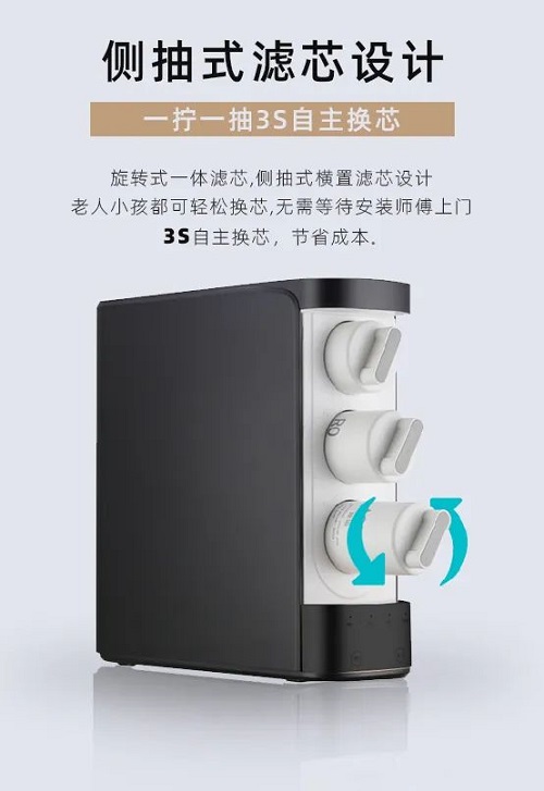科技讓生活更美好。榮事達智能反滲透純水機利用科技之力實現產品創新,讓更多人都能享受科技帶來的美好生活,側抽式濾芯設計,一擰一抽3秒自主換芯,真正體現了將細節做到極致。