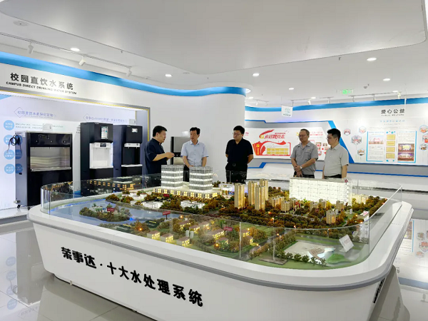 - 7月10日, 三門峽市城鄉(xiāng)一體化示范區(qū)(高新區(qū))黨工委委員張立新,大唐新能源產(chǎn)業(yè)園運(yùn)營(yíng)中心主任、招商局副局長(zhǎng)楊華夏,大唐新能源產(chǎn)業(yè)園運(yùn)營(yíng)中心招商部長(zhǎng)李海強(qiáng)一行蒞臨榮事達(dá)水工業(yè)集團(tuán)參觀交流,榮事達(dá)水工業(yè)集團(tuán)董事長(zhǎng)雷鳴,總經(jīng)理王悅生,生產(chǎn)制造總經(jīng)理孫曉峰熱情接待。此次參觀中,三門峽市城鄉(xiāng)一體化示范區(qū)領(lǐng)導(dǎo)一行首先深入榮事達(dá)智能化生產(chǎn)車間,近距離參觀了集團(tuán)先進(jìn)的全智能化生產(chǎn)線及七大實(shí)驗(yàn)室。隨后,領(lǐng)導(dǎo)們移步至智慧水世界展廳,全面了解了榮事達(dá)水工業(yè)集團(tuán)的發(fā)展歷程、輝煌成就、公益貢獻(xiàn)及黨建引領(lǐng)下的企業(yè)文化。在展廳內(nèi),領(lǐng)導(dǎo)們對(duì)榮事達(dá)水工業(yè)集團(tuán)的全屋智慧凈水系統(tǒng)、社區(qū)智慧飲水系統(tǒng)、醫(yī)院用水處理系統(tǒng)、農(nóng)村安全飲水系統(tǒng)、校園直飲水系統(tǒng)等十大水處理系統(tǒng)表現(xiàn)出了濃厚的興趣。這些系統(tǒng)不僅體現(xiàn)了榮事達(dá)在水處理領(lǐng)域的深厚技術(shù)積淀,也彰顯了其致力于通過(guò)科技創(chuàng)新改善民眾生活質(zhì)量的堅(jiān)定信念。-參觀農(nóng)村安全飲水項(xiàng)目-在座談會(huì)上,領(lǐng)導(dǎo)們認(rèn)真觀看了榮事達(dá)企業(yè)宣傳片和榮事達(dá)凈水工廠宣傳片。董事長(zhǎng)雷鳴,作為地道的河南人,對(duì)家鄉(xiāng)領(lǐng)導(dǎo)的到來(lái)表達(dá)了由衷的歡迎。他還就集團(tuán)的多元化產(chǎn)品矩陣、市場(chǎng)發(fā)展戰(zhàn)略及持續(xù)創(chuàng)新能力進(jìn)行了詳細(xì)介紹。總經(jīng)理王悅生特別強(qiáng)調(diào)集團(tuán)順應(yīng)新基建趨勢(shì),結(jié)合物聯(lián)網(wǎng)、大數(shù)據(jù)和云計(jì)算技術(shù),首創(chuàng)社區(qū)智能凈水工廠項(xiàng)目,展現(xiàn)凈水科技創(chuàng)新實(shí)力,并獲得20項(xiàng)專利,行業(yè)領(lǐng)先。三門峽市城鄉(xiāng)一體化示范區(qū)(高新區(qū))黨工委委員張立新對(duì)來(lái)自家鄉(xiāng)并在合肥取得輝煌事業(yè)成就的雷鳴董事長(zhǎng)表達(dá)了高度的贊賞與由衷的欣喜。他特別指出,榮事達(dá)水工業(yè)集團(tuán)在水處理領(lǐng)域的卓越成就令人震撼,不僅展現(xiàn)了企業(yè)強(qiáng)大的技術(shù)實(shí)力和市場(chǎng)競(jìng)爭(zhēng)力,更彰顯了其勇于創(chuàng)新、追求卓越的精神風(fēng)貌。希望以此次交流為契機(jī),增進(jìn)聯(lián)絡(luò),架起一座交流互通的橋梁。
