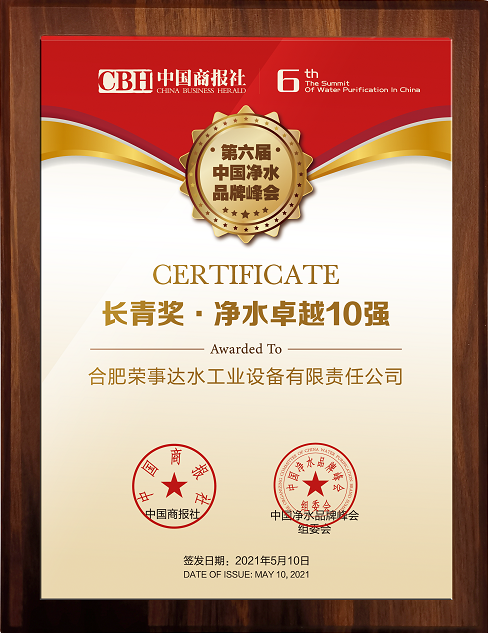【號外】熱烈祝賀榮事達(dá)榮獲2021長青獎“凈水卓越10強(qiáng)”、“商用凈水標(biāo)桿企業(yè)”等多項榮譽(yù)