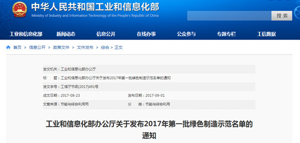 為貫徹落實(shí)《中國制造2025》,深入實(shí)施綠色制造工程,加快構(gòu)建綠色制造體系,率先打造一批綠色制造先進(jìn)典型,工信部確定了2017年第一批綠色制造示范...