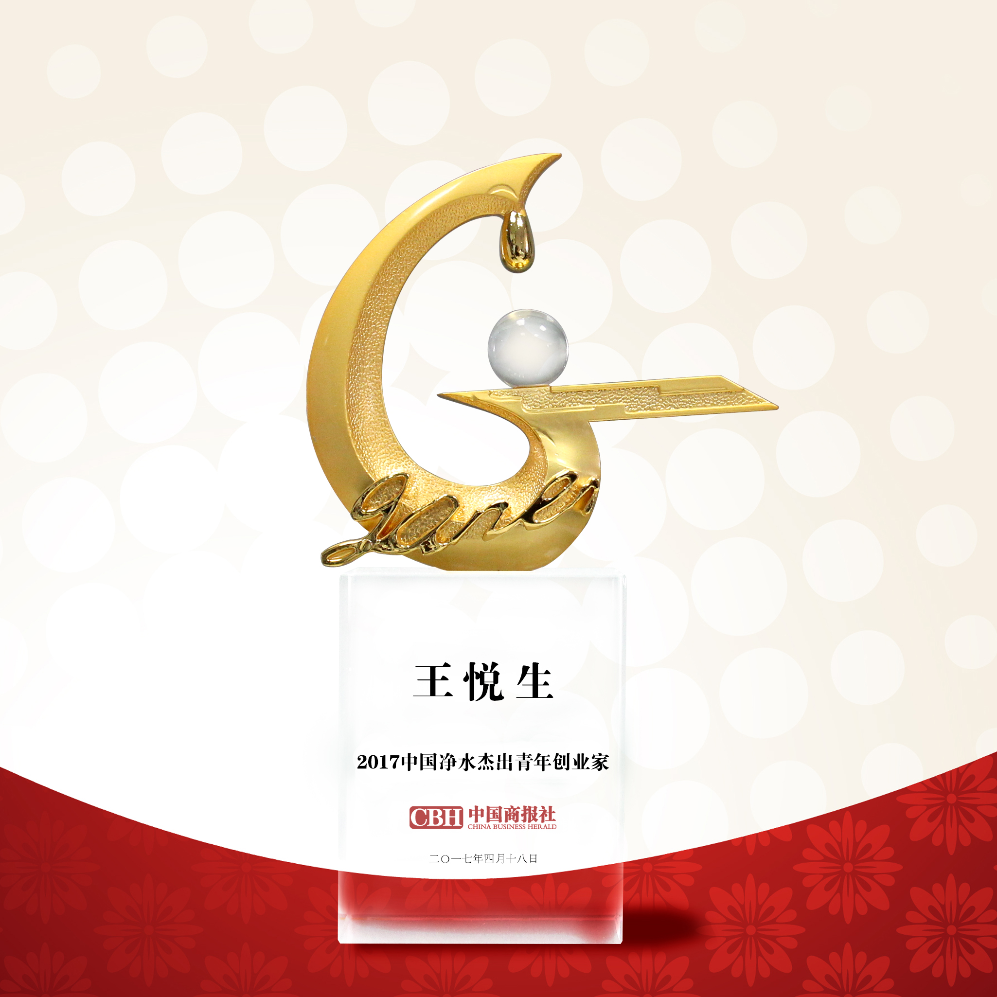 熱烈祝賀榮事達水工業公司總經理王悅生獲評“2017年中國凈水杰出青年創業家”