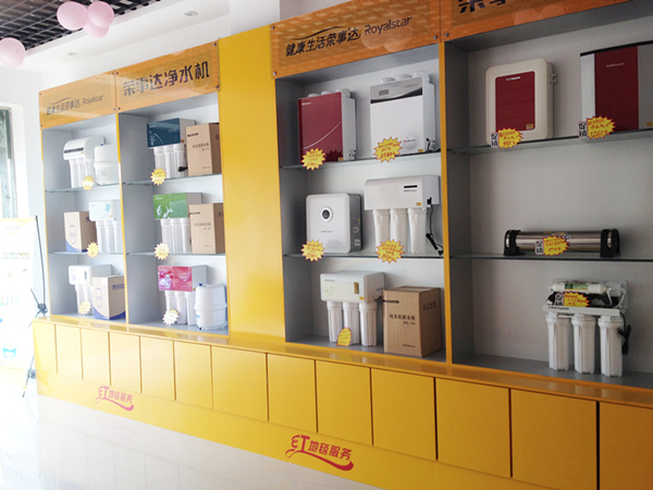 專賣店內,鮮亮的黃色展架上整齊擺放著 “梅、蘭、竹、菊”反滲透純水機,“中國風”主題特色鮮明,產品分外搶眼。其他多款50G箱式純水機和罩型純水機,各類箱式中空超濾凈水機和管道式凈水機也一一亮相,吸引了眾多消費者在店中咨詢、選購。
