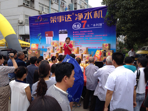 為打開市場、推廣產品,蕪湖管理中心舉辦了多次市場活動。7月5日,榮事達凈水機“送健康 進萬家”感恩回饋活動在蕪湖市三山區順利舉行,現場人氣爆棚。消費者購機不但能享受價格優惠,還能砸金蛋抽大獎?;顒赢斕?,現場成交凈水機達34臺,電動車、洗衣機等大獎均被抽出。
