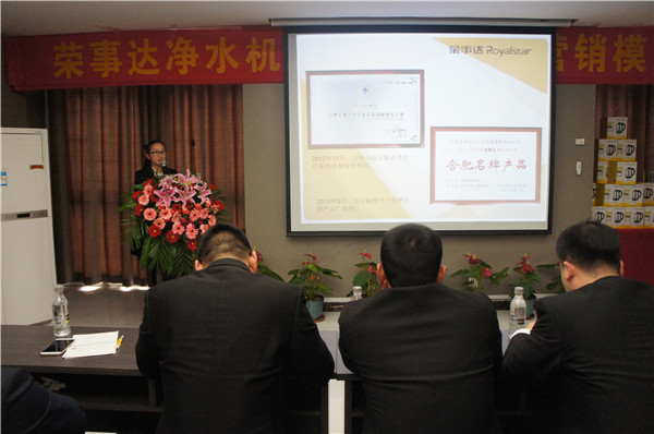 23日下午培訓會正式開始后,榮事達水工業公司渠道開發部張總為參會客戶講解了榮事達淵遠的品牌發展歷史及深厚的文化底蘊;介紹了公司強勁的研發實力及生產能力;講述了公司作為凈水名企在建立行業規范過程中所起的重要作用;展示了企業著力打造產品力,并不斷回饋社會方面所取得的各項榮譽資質。