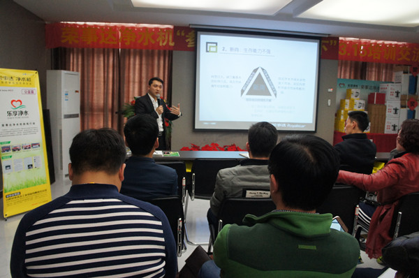 培訓會上,廣大客戶零距離見證榮事達凈水機產品質量,在生產線上觀看了產品的每道制造工序,在檢測線上見證了產品質量的檢測結果,在實驗室親歷了測試產品性能的科學實驗。隨后參加了全體人員聆聽了產品講座,渠道開發部董部長將榮事達凈水機所采用的膜、壓力桶、泵、龍頭等配件與其他廠家的產品進行比較,從產品質量、安裝拆卸便攜性、用戶使用體驗等多個方面突出了榮事達凈水機配件的質量和性能優勢。