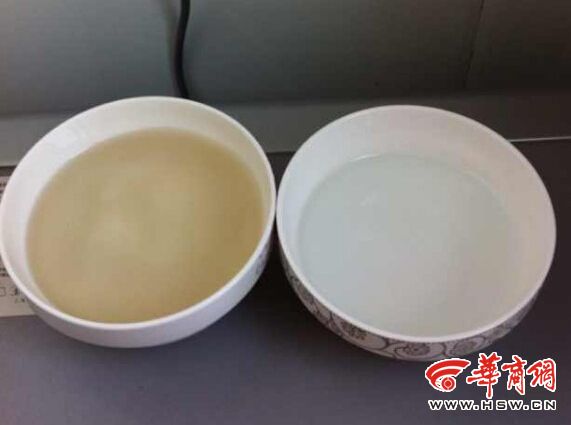 昨日下午,在該小區,華商報記者看到,小楊家的自來水確實呈淡黃色,通過凈化后,水就變得清澈透明。淡黃色的水沒有氣味,喝下去也基本沒有味道。